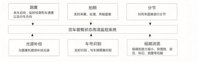 系統(tǒng)采用高清彩色線陣像機,實時采集運行中列車及貨物的裝載狀態(tài),生成高清晰彩色視頻圖像并 按車廂進行準確分割,實現(xiàn)預(yù)檢作業(yè)的快速發(fā)現(xiàn)、快速定位、快速標記、及時報警等功能。通過優(yōu)化的 壓縮算法,使網(wǎng)絡(luò)傳輸數(shù)據(jù)流量小、視頻質(zhì)量高,符合貨檢安全監(jiān)控三級聯(lián)網(wǎng)系統(tǒng)的應(yīng)用條件,可接入 貨檢集中監(jiān)控平臺。