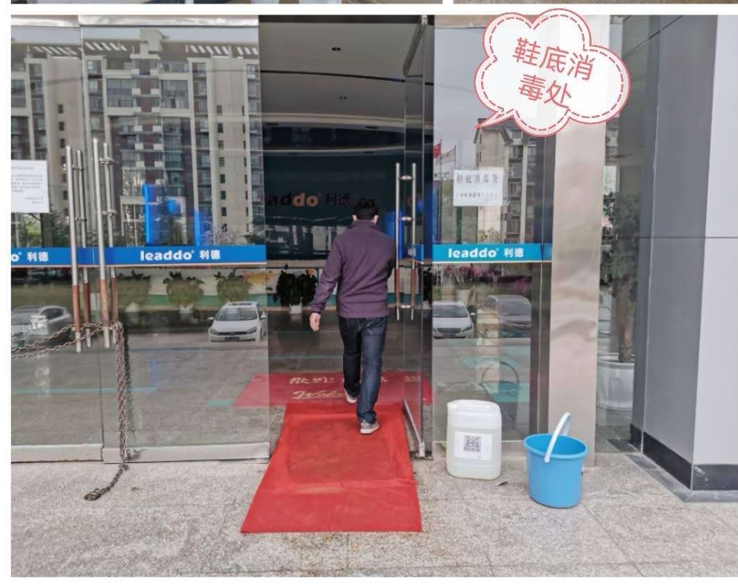 經過第一道測溫和噴霧消毒后,在進入辦公樓區(qū)域時每位員工都會經過一個放置于大樓入口處的腳底消毒池,這樣有效的隔絕了容易忽視的來自腳底的病毒,杜絕了把病毒帶進辦公區(qū)。